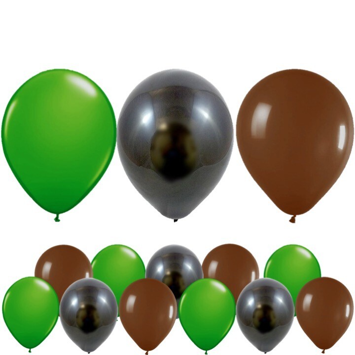 You will receive x4 green balloons, x4 brown balloons and x4 black balloons