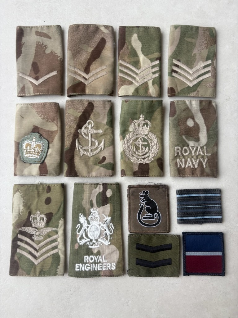 BRITISH Army Rank Slides & Badges x14 Items MTP Camouflage RAF Royal Navy