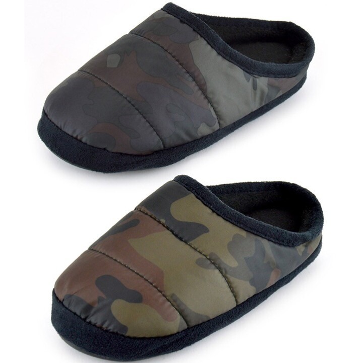 KIDS ARMY CAMO PUFFER SLIPPERS INFANT JUNIOR BOYS GIRLS UK 9-3 CAMOUFLAGE GAMING