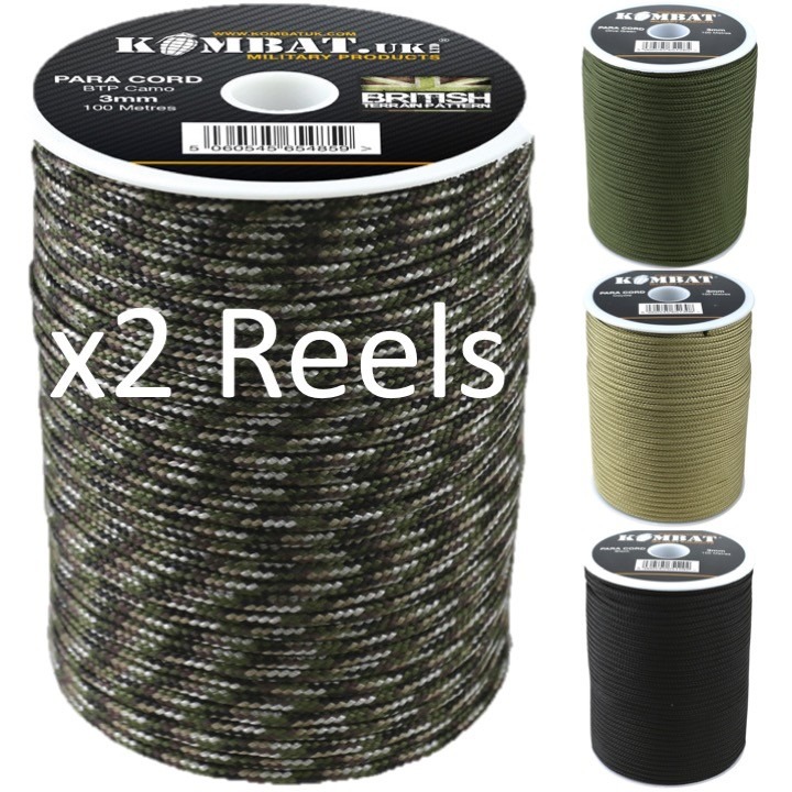 MILITARY 100m PARA CORD REEL x2 REELS ARMY MTP BTP CAMO 3MM BASHA BIVVI GUY ROPE